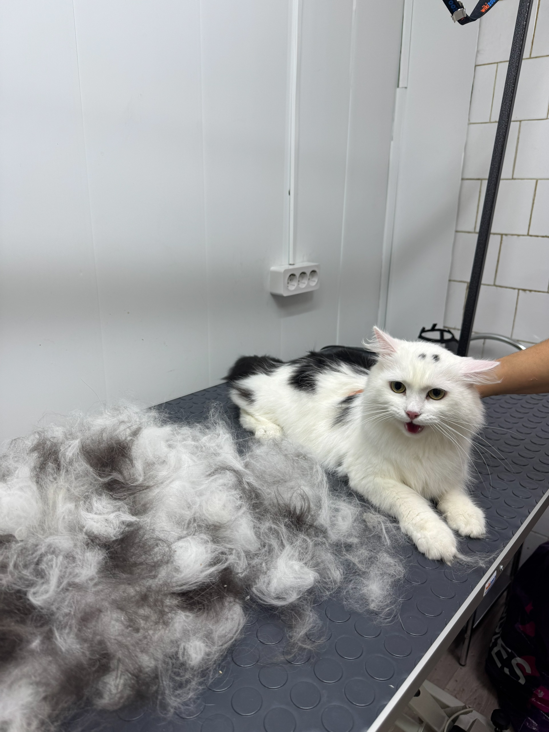 Мытьё, сушка, стрижка, когти, уши — всё спокойно и без спешки.