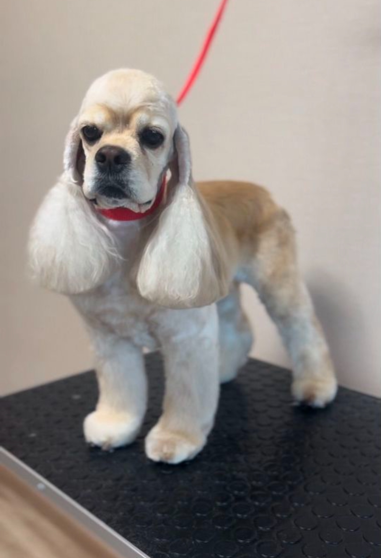 Комплекс: вычёсывание + стрижка под машинку • Порода: померанский шпицКокер активный, но грумер быстро нашёл подход. Гигиеническая стрижка + уши и лапы, шерсть ровная, форма по стандарту.